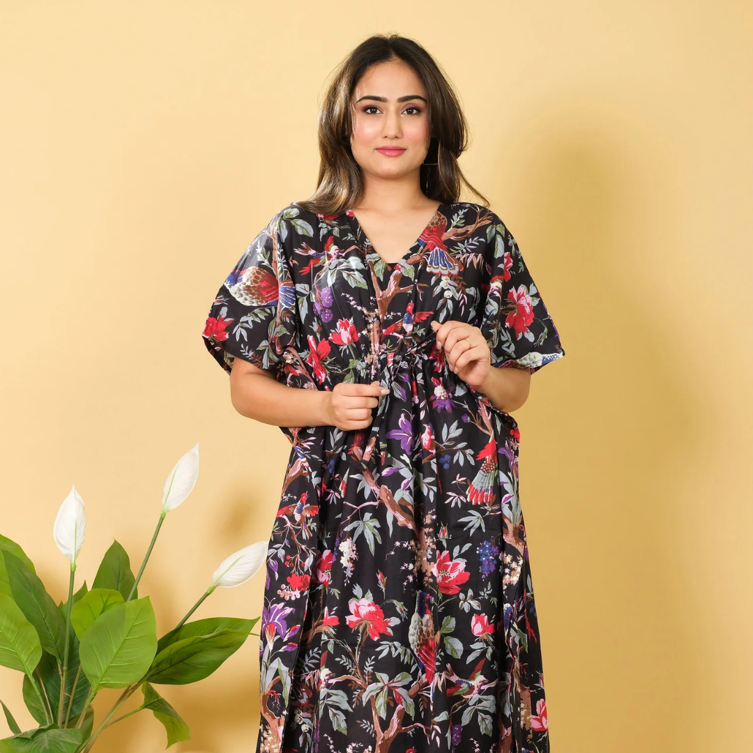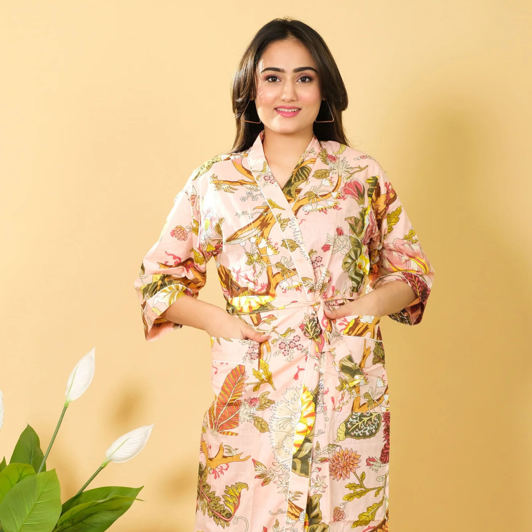 View full detailsAdd a Touch of Elegance to Your Wardrobe with Our Flora Print Kimono Robe Elevate your everyday style with our stunning kimono robe, crafted from 1...